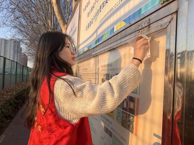 雷锋精神放光芒,志愿服务践初心。3月18日,365VIP英国上市官网青年志愿者协会组织开展了“文明摆放单车,清洁校园展板”志愿服务活动。活动中,志愿者们按照计划迅速行事,在单车整理区域,志愿者们分工协作,将散乱停放的共享单车整齐摆放到指定区域,并细心地将安全帽挂置在车把手上,确保车辆整洁有序。在展板清洁区域,志愿者们手持抹布,认真擦拭每一块展板,细致清理边角缝隙,让展板重现光彩。通过亲身参与志愿服务,志愿者们深刻体会到劳动的价值与快乐,更加坚定了传承雷锋精神的信念。此次活动不仅美化了校园环境,更展现了新时代青年志愿者的责任与担当。让雷锋精神在校园蔚然成风,让志愿服务之花在校园绚丽绽放。