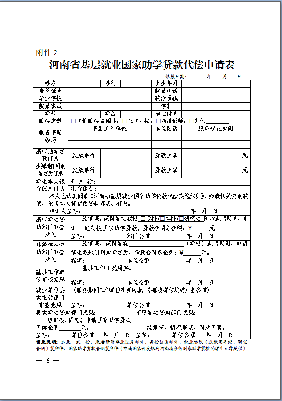 1河南省高等公司毕业生国家助学贷款代偿申请表